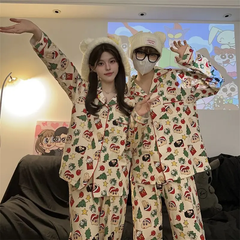 Couple Pajamas Plus Size Long Sleeved Men'S And Women'S Spring And Autumn Crayon Shin Chan Same Style Cute Cartoon Home Clothes